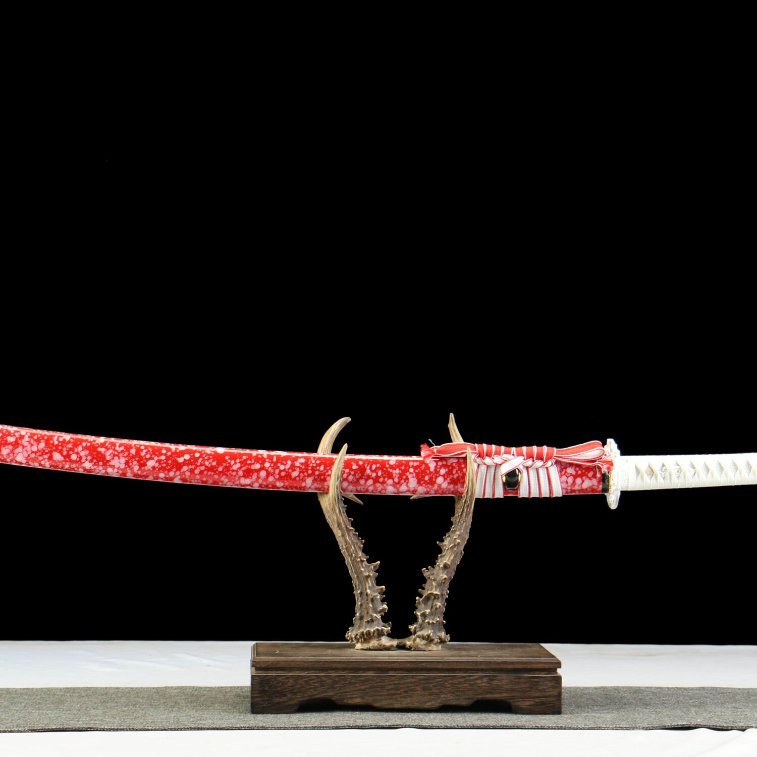 The high-performance samurai sword combines exquisite traditional forging techniques with modern design, crafted for those seeking exceptional cutting performance, durability, and aesthetics. Each sword is meticulously sharpened and heat-treated to ensure it remains sharp, durable, and stable in various environments.