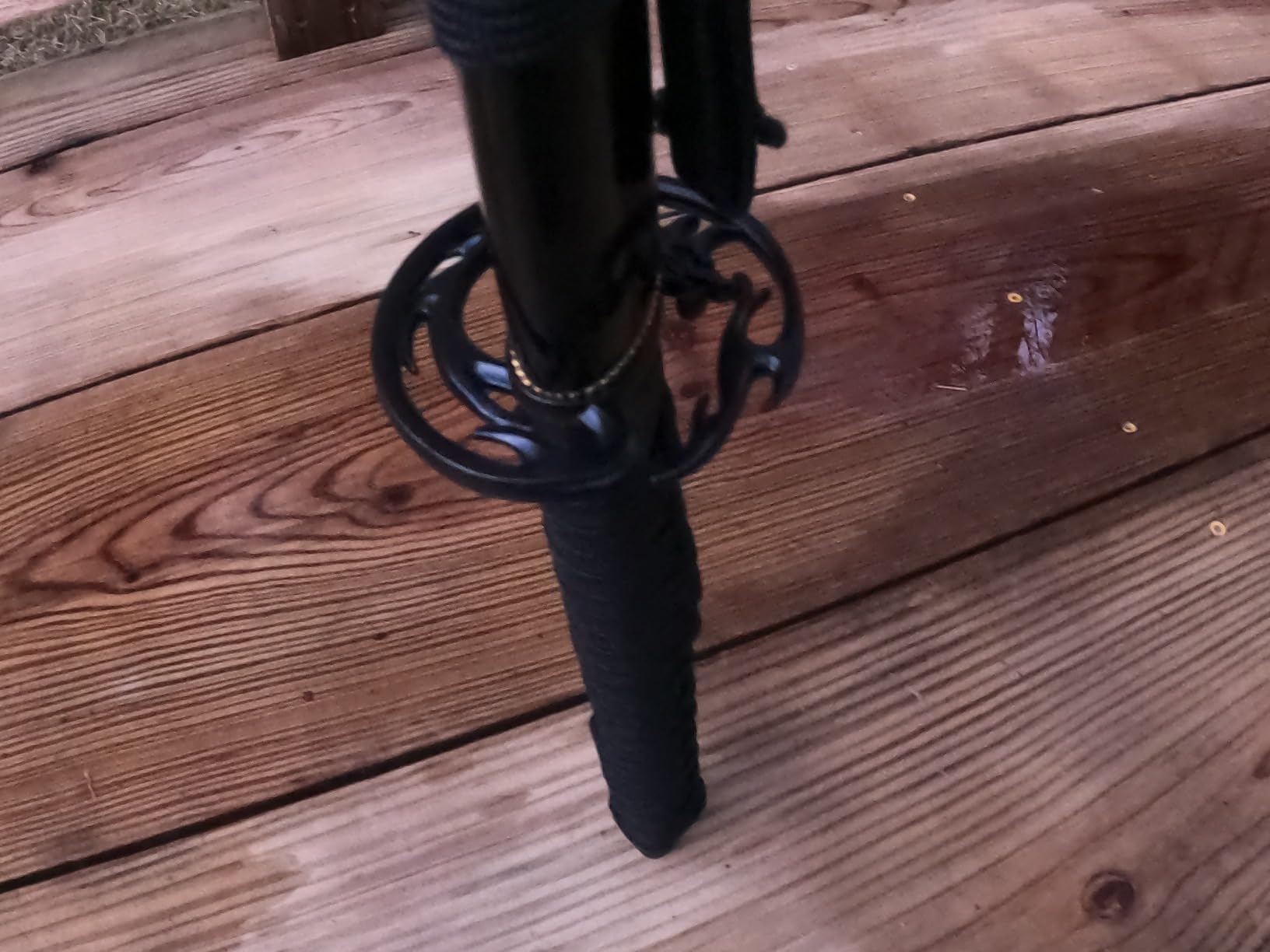 The wrapped handle is very comfortable as well, making it enjoyable to hold the sword. The sword is a bit heavier than I expected, but I would say this is actually a good thing. It's not heavy, per se, just weighty.