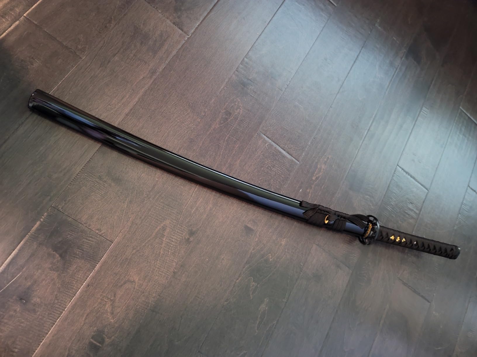 Handcrafted Japanese Samurai Sword – Made with 1060 Steel – Black Scabbard with Brown Sageo