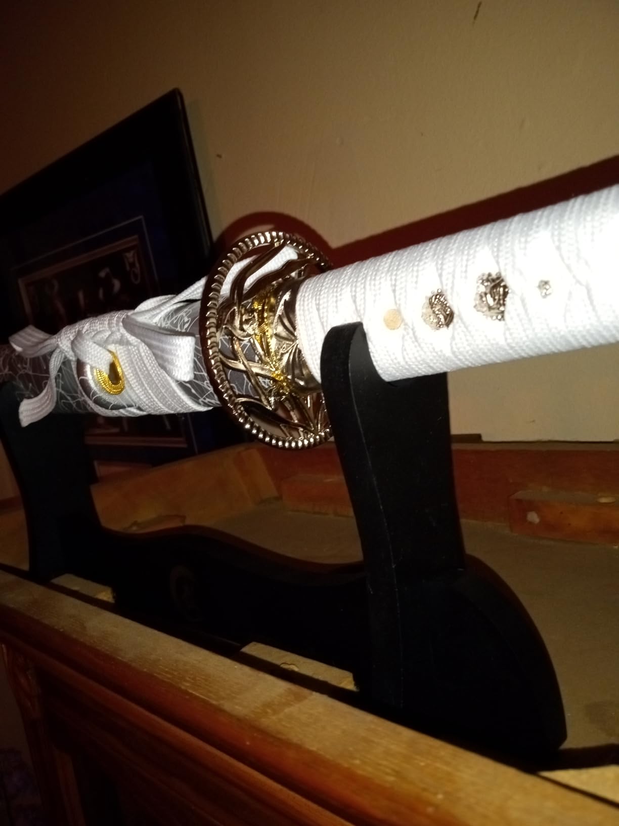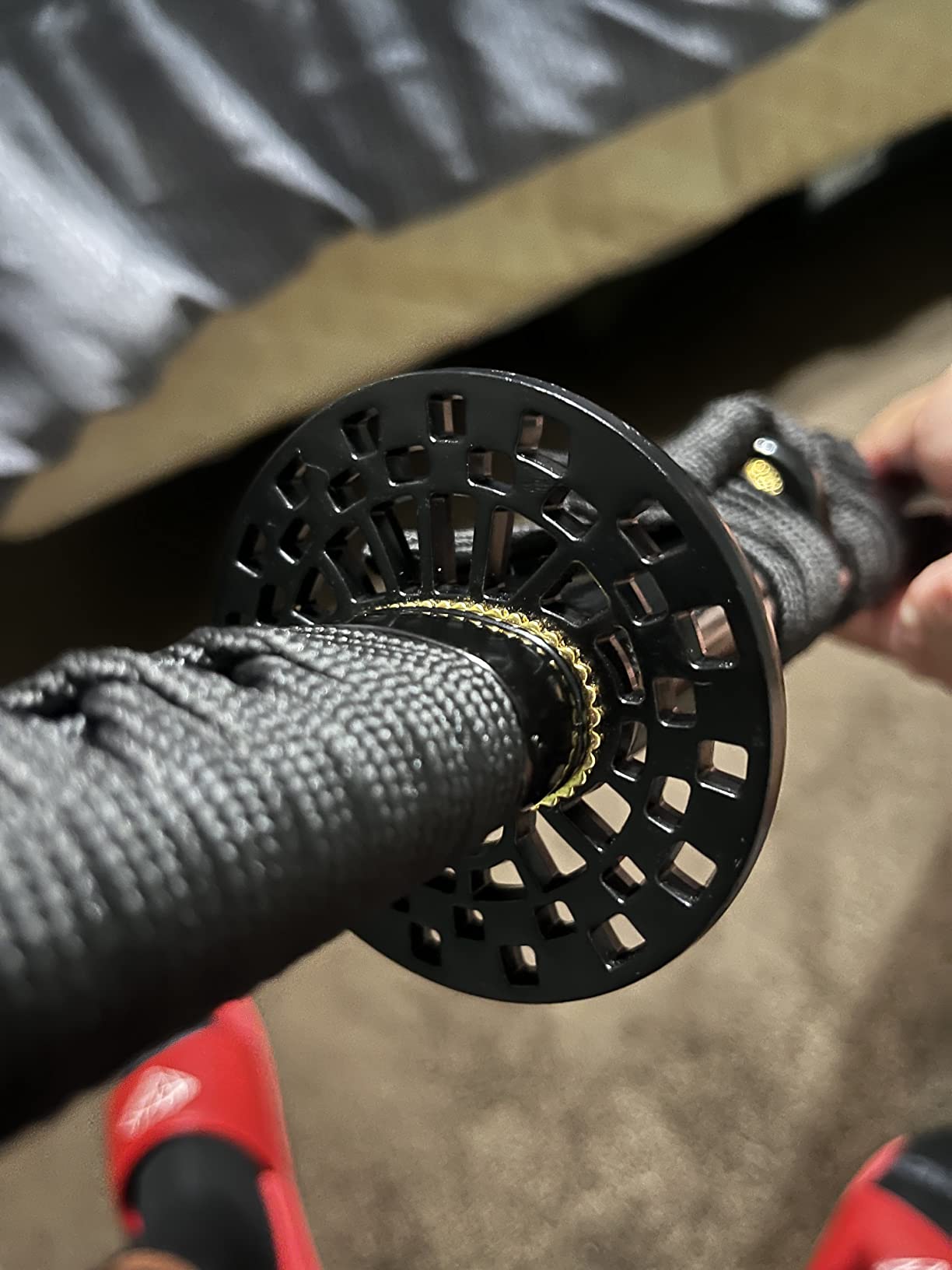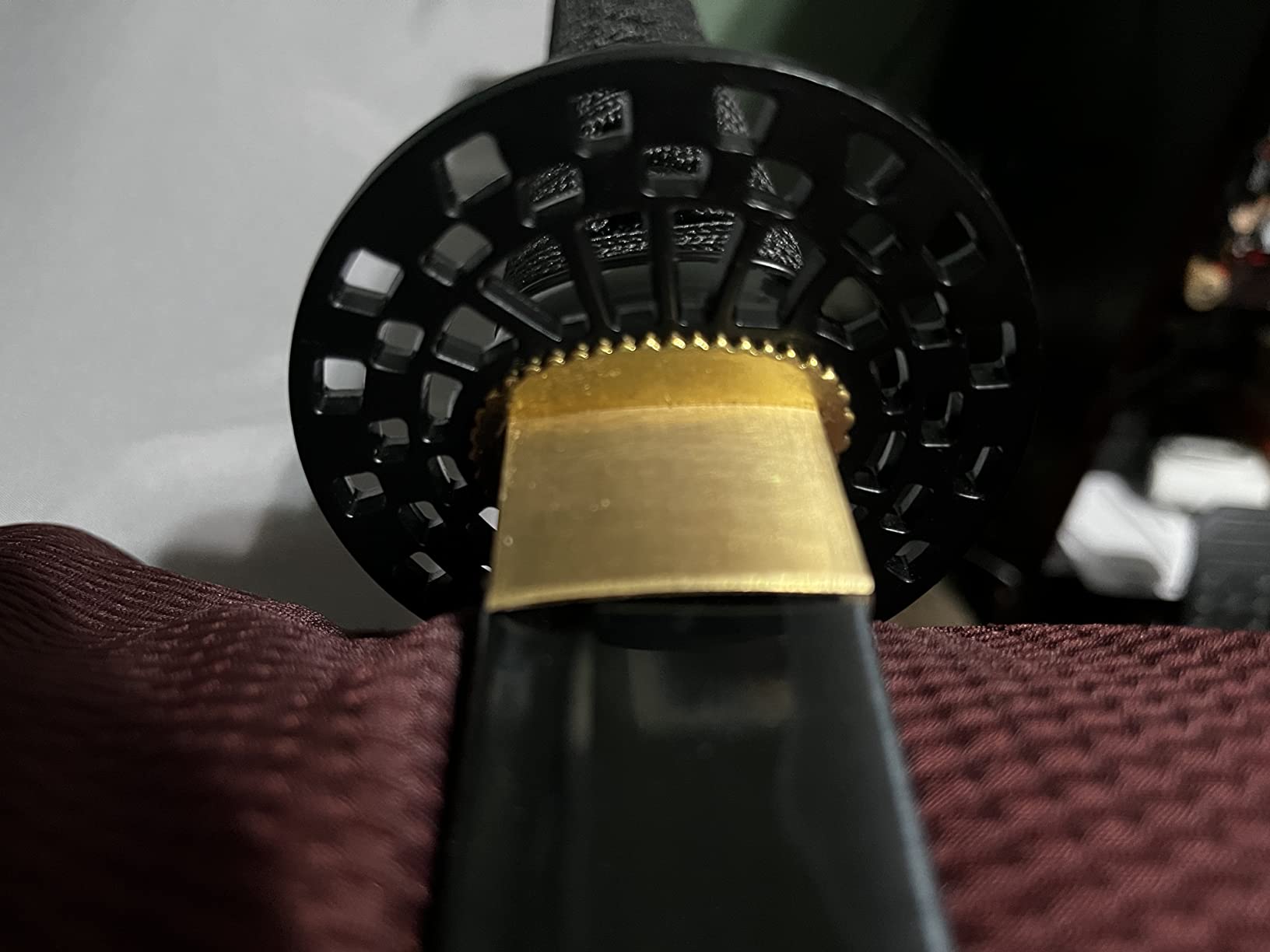 the Tsuba is little small, but not a big deal since you don't need a large Tsuba unless you're in a real blade fight. The Tsuka (grip) is very nice, as far as I can tell, real ray skin (could be synthetic - I'm not an expert on ray skin). The Tsaka is wrapped in a quality feeling leather. I could go on about each component, but just take my word for it, it's great deal. Scabbard is very nice, and it's sharp. 'nuff said.