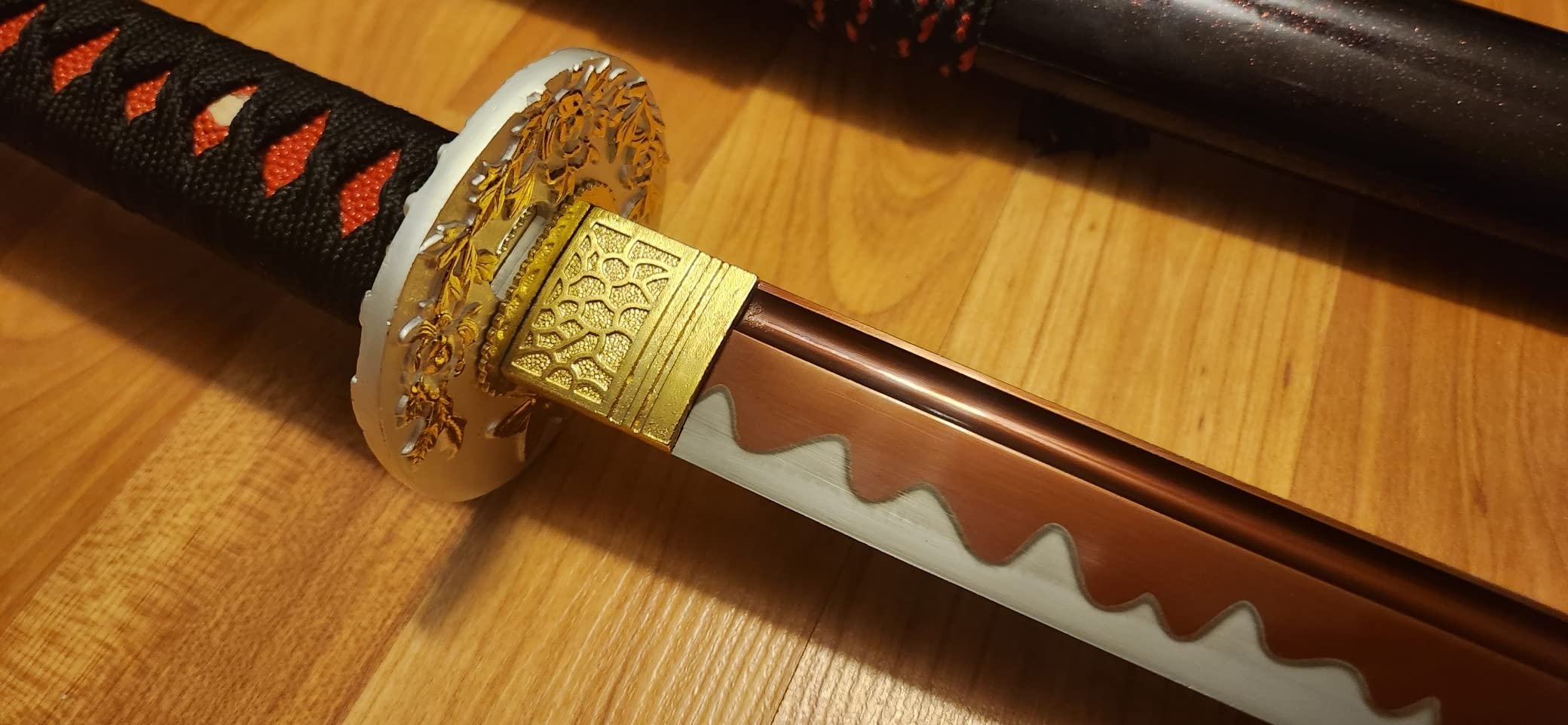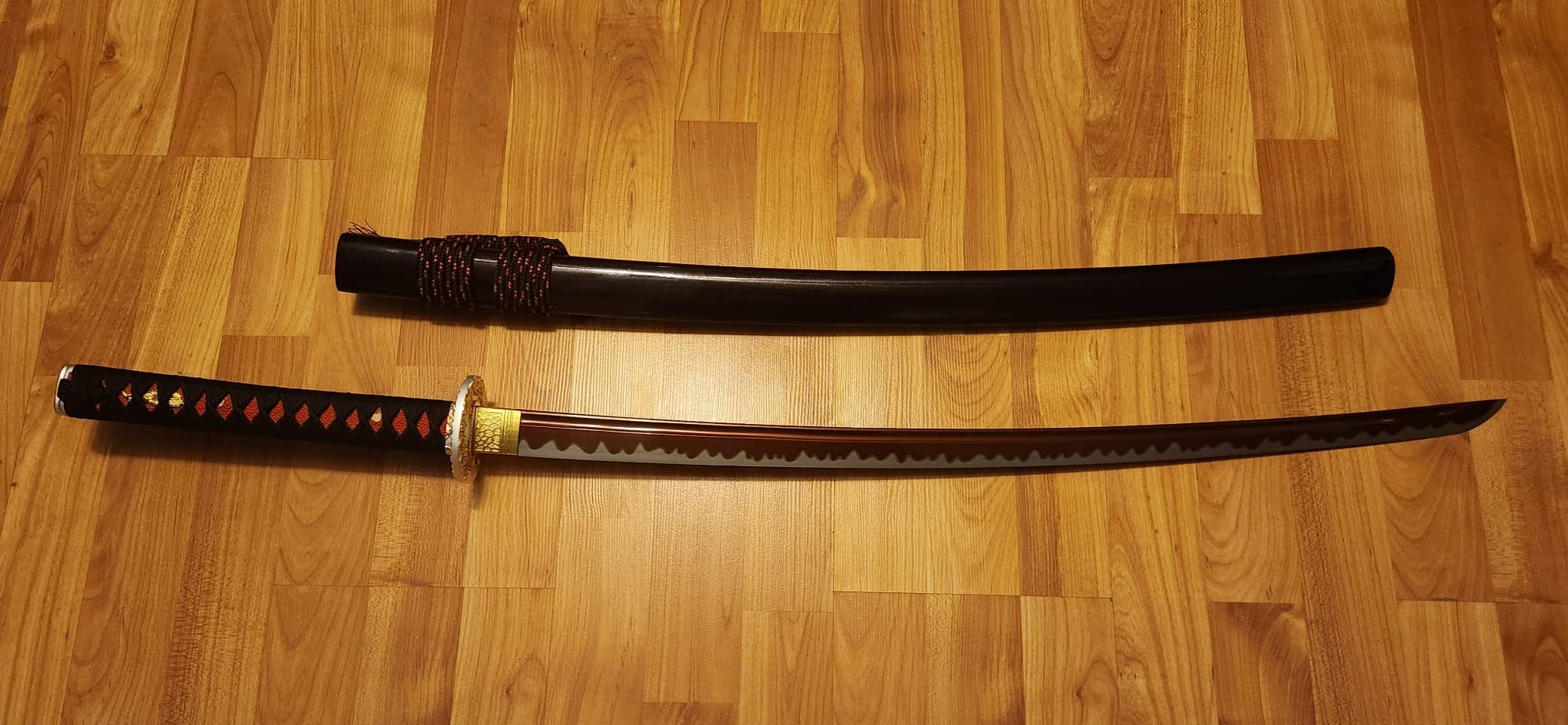 1060 Steel – Handmade Japanese samurai sword with Reddish brown Scabbard