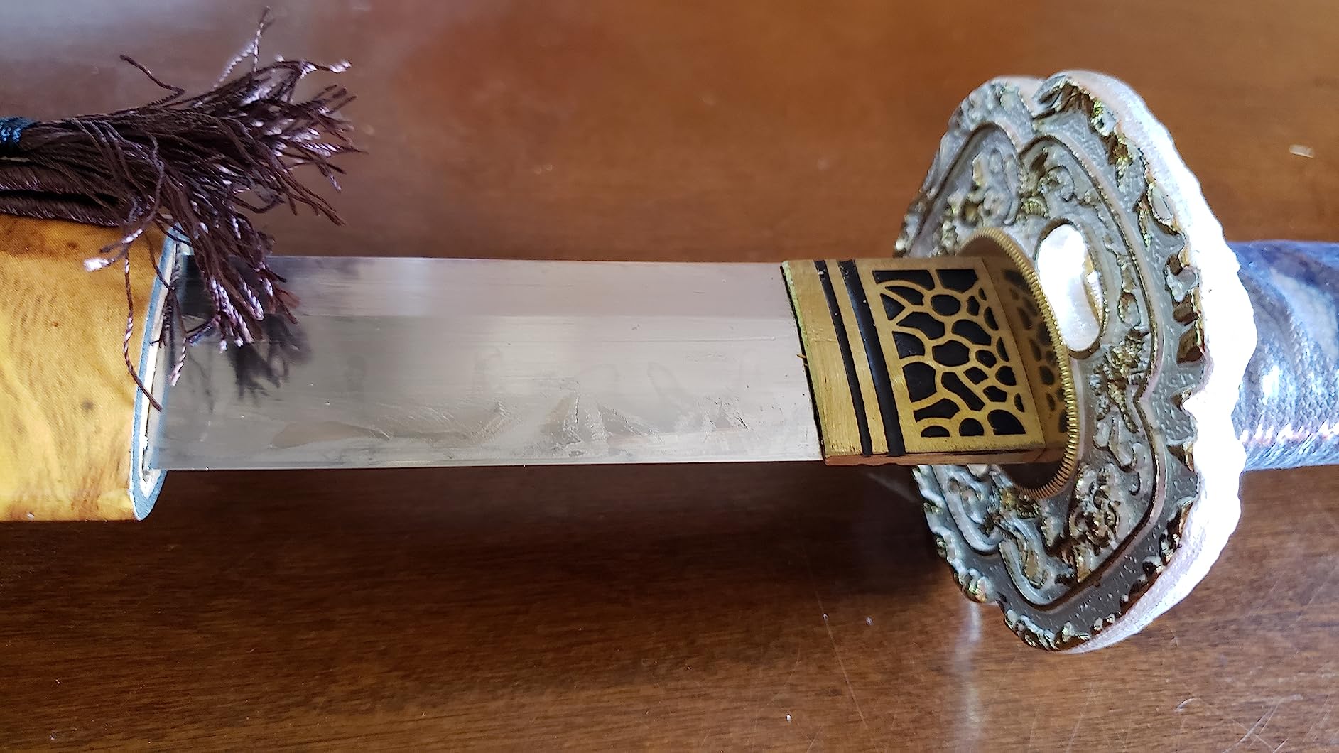 Material 1095 Guard (Tsuba ) Eight grinding steps Scabbard (Saya ) Qingpi wood (painted) Handle (tsuka ) strip winding