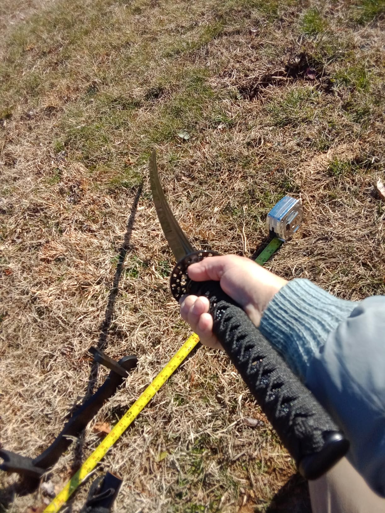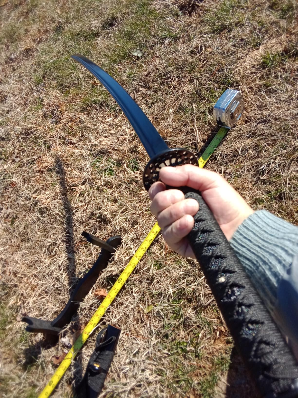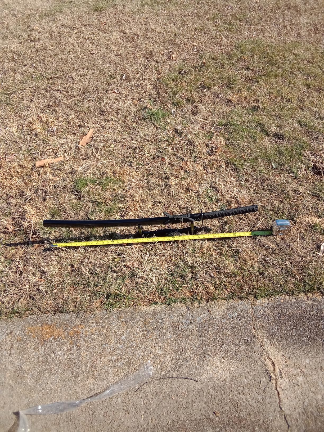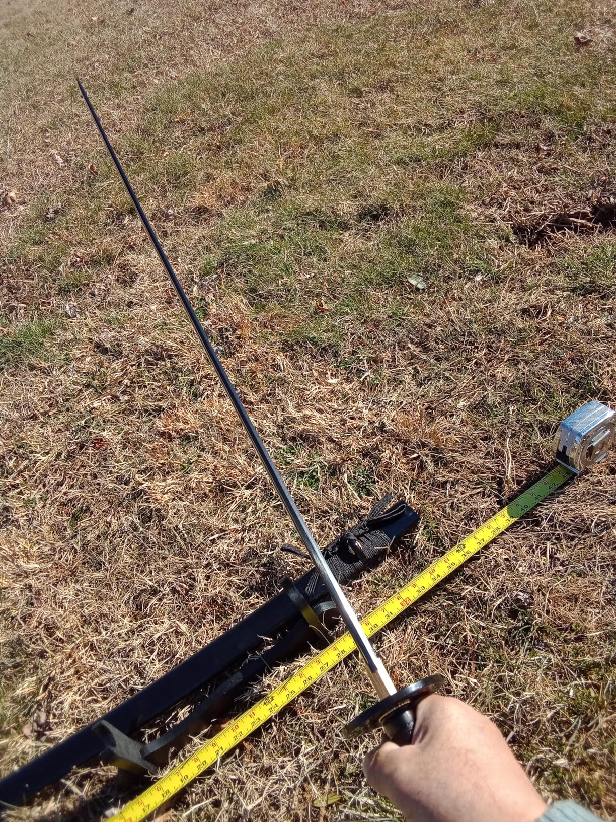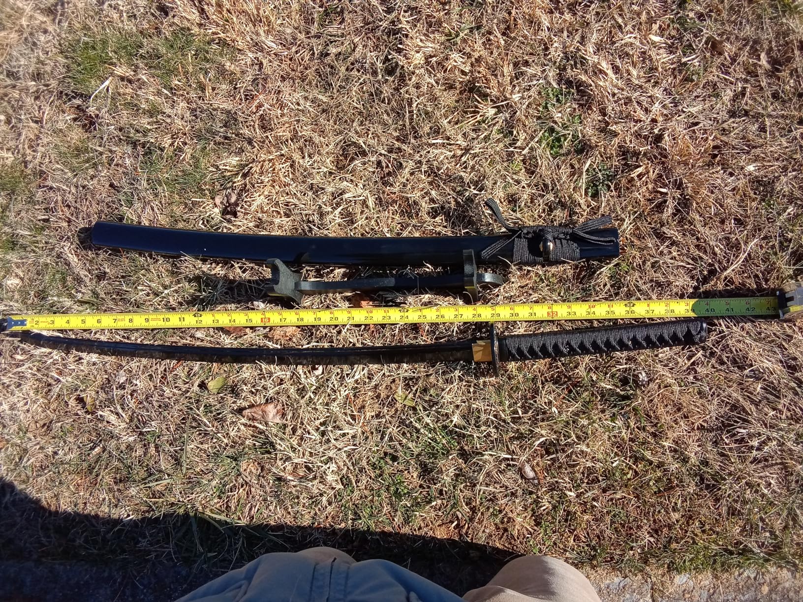 Length with scabbard 41.33(in) Length of the blade 28.34(in) Blade thickness 0.27(in) Length of the handle 11.81(in) Width of the blade 1.25(in) If you are not satisfied with your goods, you can return them within 30 days. Click here to view our return policy.